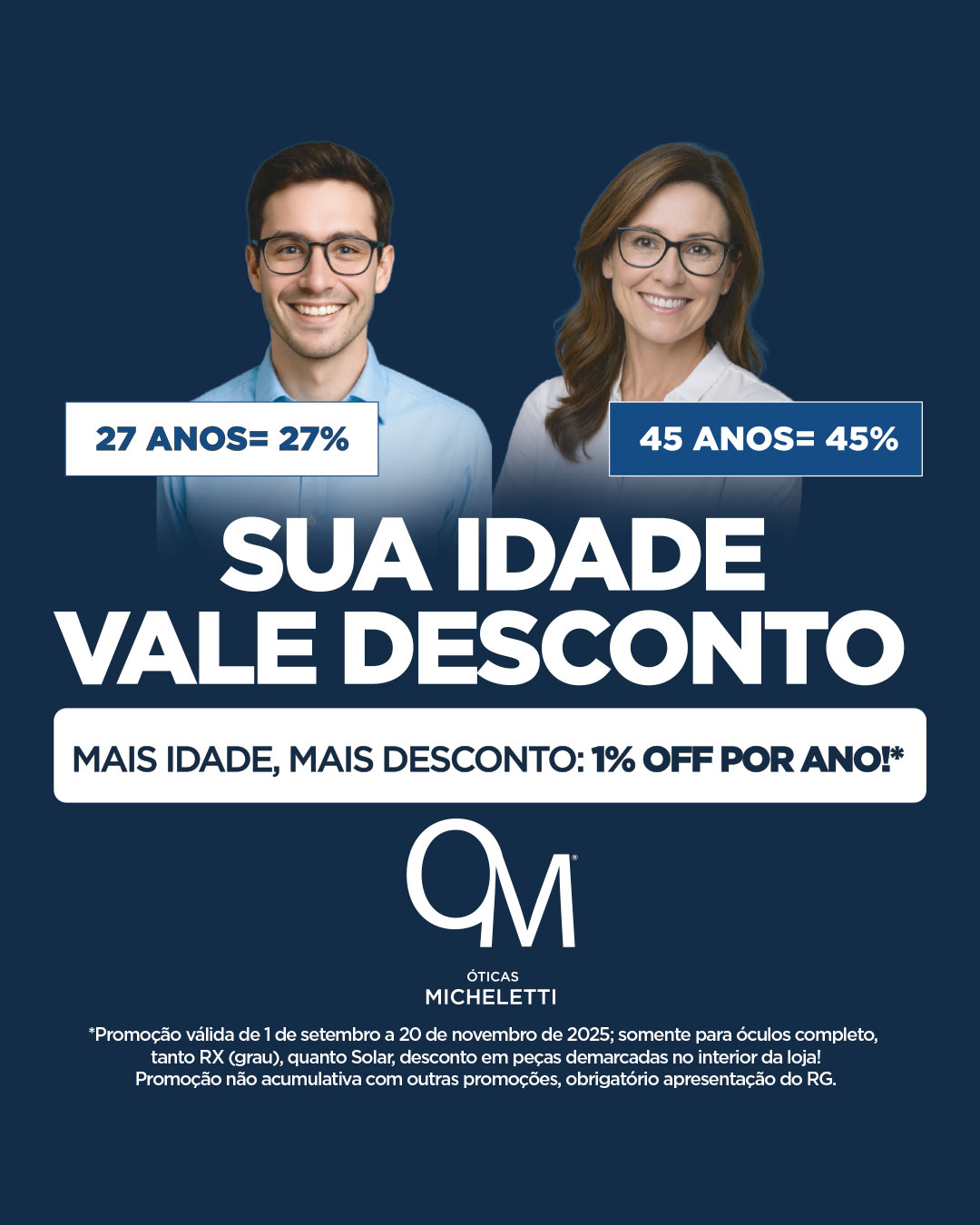 Imagine transformar cada ano da sua vida em um benefício real na hora de cuidar da sua visão. Nas Óticas Micheletti, isso é possível! 👓