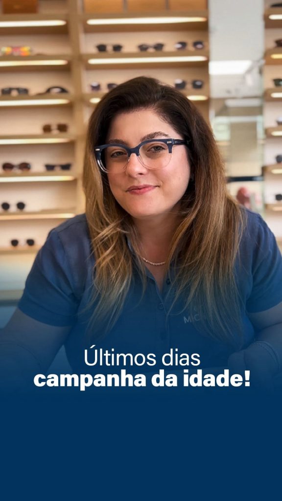 A promoção “Sua Idade Vale Desconto” está nos seus últimos dias, e ainda dá tempo de garantir o seu novo óculos com condições especiais que valorizam cada fase da vida. 👓